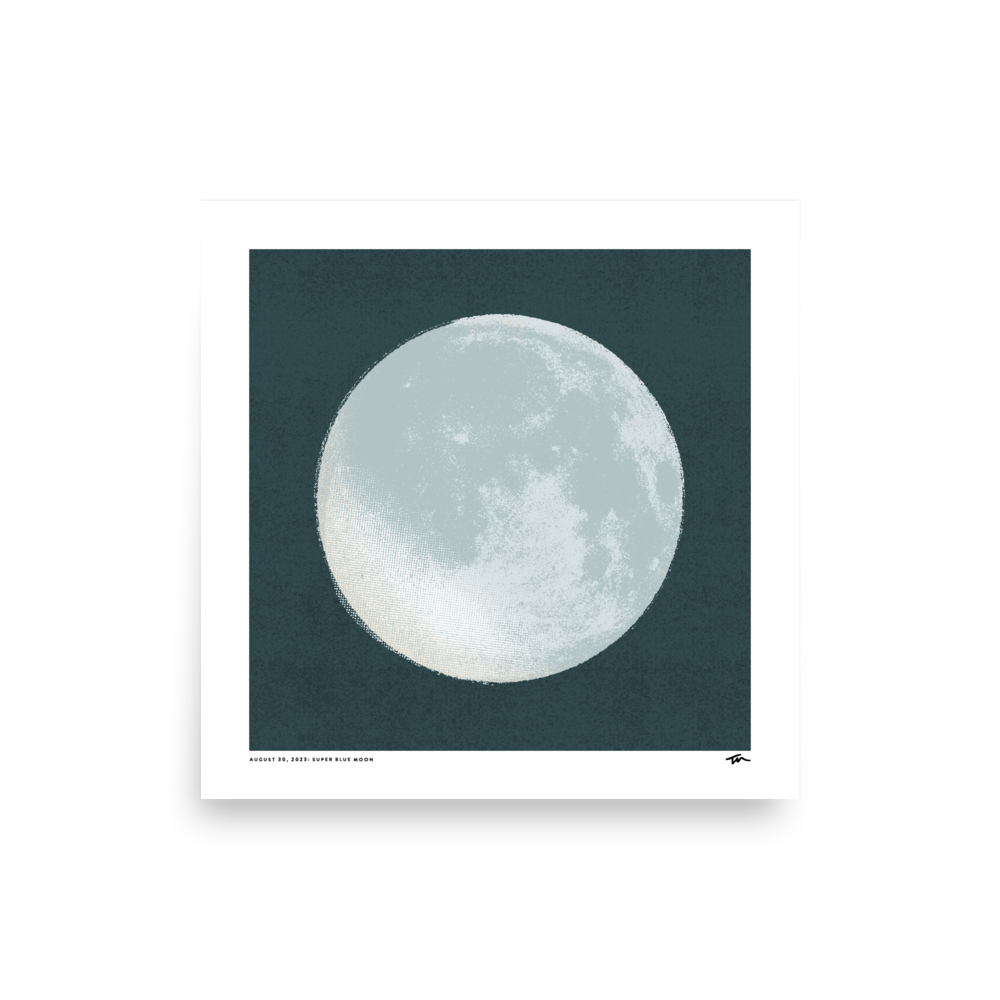 Open edition art print of the design created to showcase the beauty of the super blue moon.